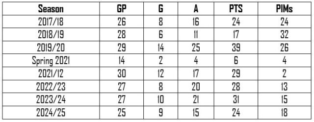 With 206 competitive appearances, nobody has played more Huskies games than Stuart. He also holds the club record for assists, with 129. He recently won the 2024/25 Supporters’ Player of the Season, adding to the many club awards he has picked up over the years.
