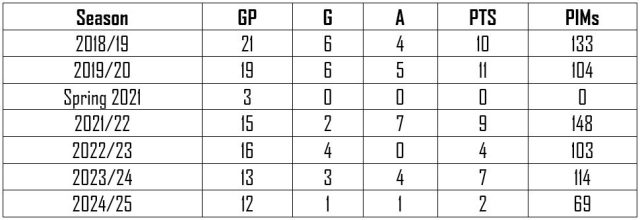 Over this time, Luke has earned a reputation as a hard-working, no-nonsense player who brings grit and determination every time he steps on the ice. He will stand up for his team-mates whenever the need arises, making him a fan favourite and a key character in the locker room.