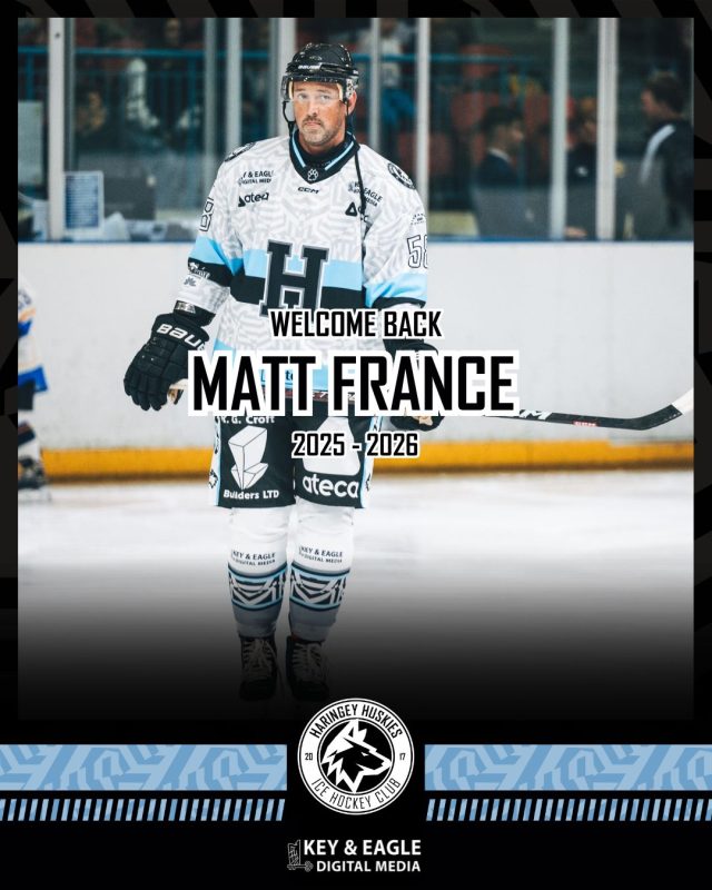 Your Haringey Huskies are delighted to announce that defender Matt France has re-signed for the club with a new, expanded role.