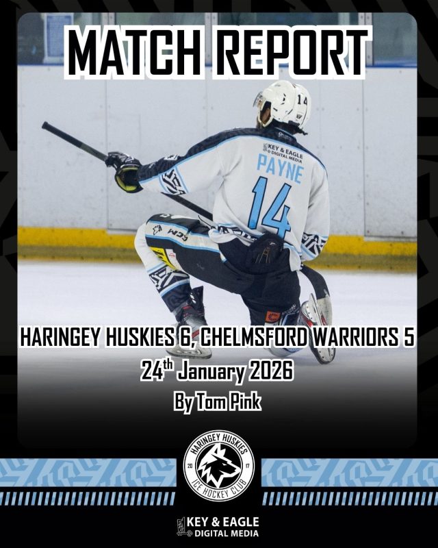 There’s tussles out on the ice but nothing boiling over as yet. Perennial villain and Chelmsford D-man Nick Green prowls around the blue line, but even the return of Luke Martin doesn’t produce the fireworks we saw here last time Chelmsford visited. I imagine Haringey are keeping him on a very short leash.